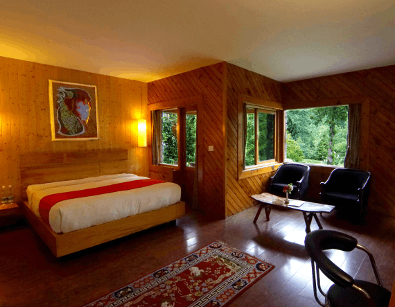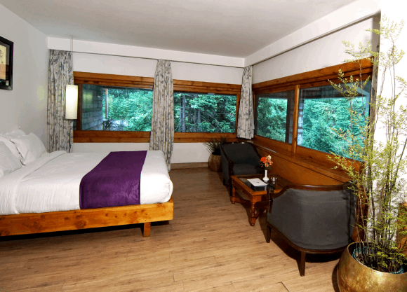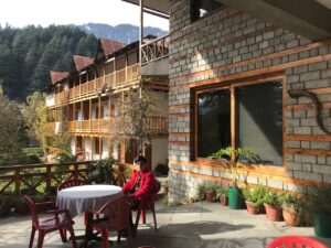 Manali's magic unfolds before you at Banon Resort's enchanting porch cafe...