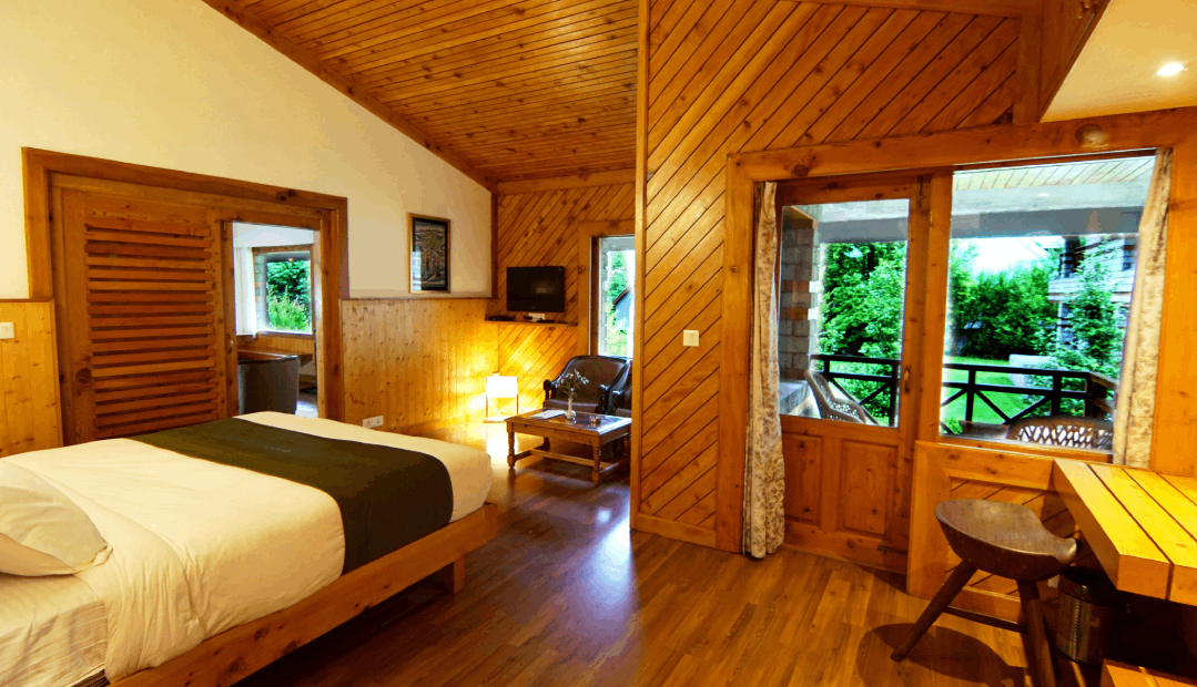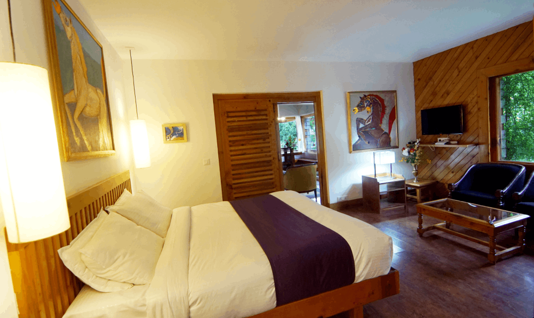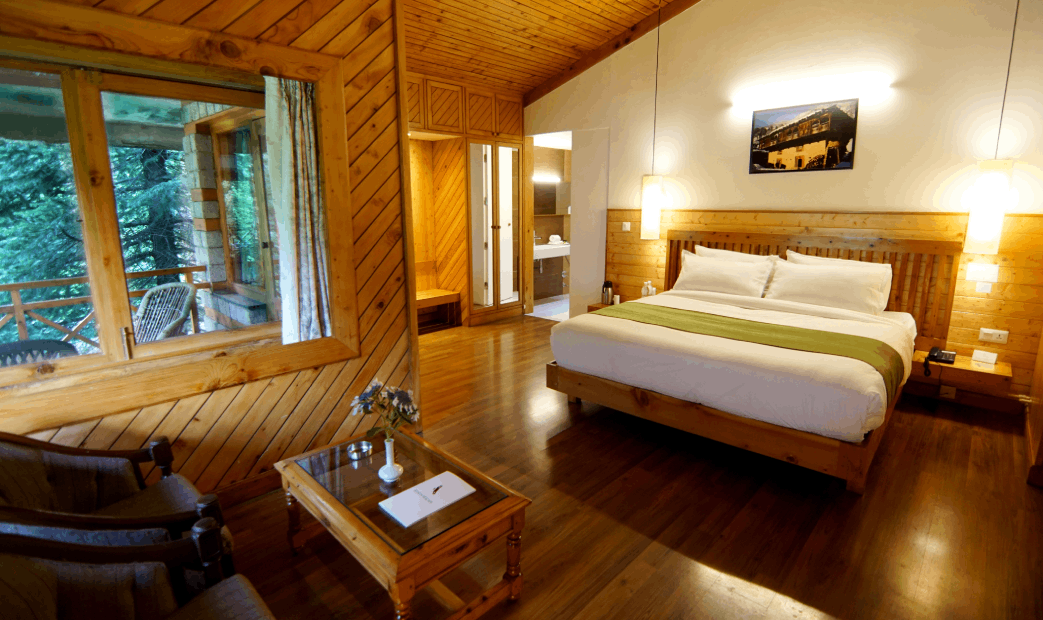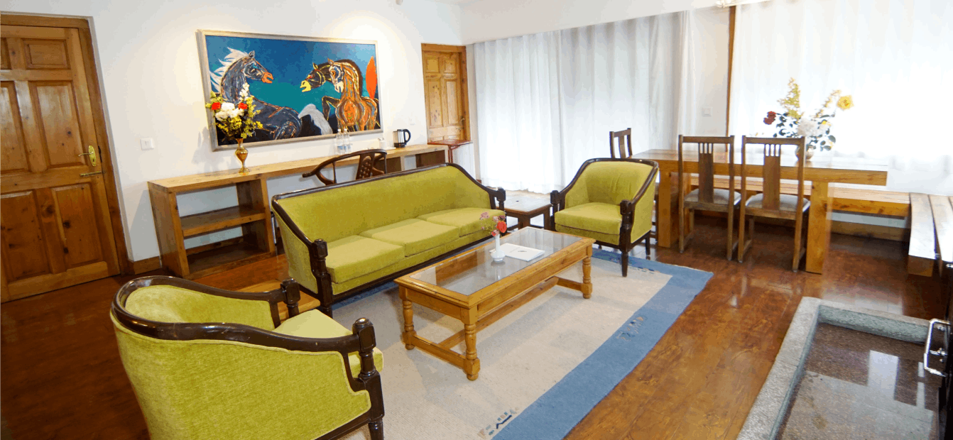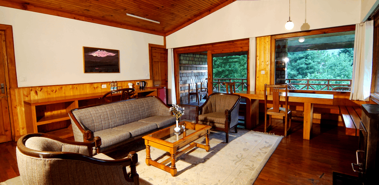 These Villas consist of Suites and rooms providing utmost seclusion with private gardens and balconies, ensuring ample space and privacy for guests. Each villa comprises two separate floors, featuring a bedroom (Villa Room) and a suite (bedroom with a sitting room) (Villa Suite) on each level. These rooms and suites can be interconnected (Villa Floor), catering ideally to families. Additionally, all suites rooms, and sitting areas have private balconies, enhancing the overall guest experience. These spacious suites and rooms offer all modern amenities overlooking landscaped gardens, fruit trees, with magnificent views of the great Himalayan Range and reserved deodar forests